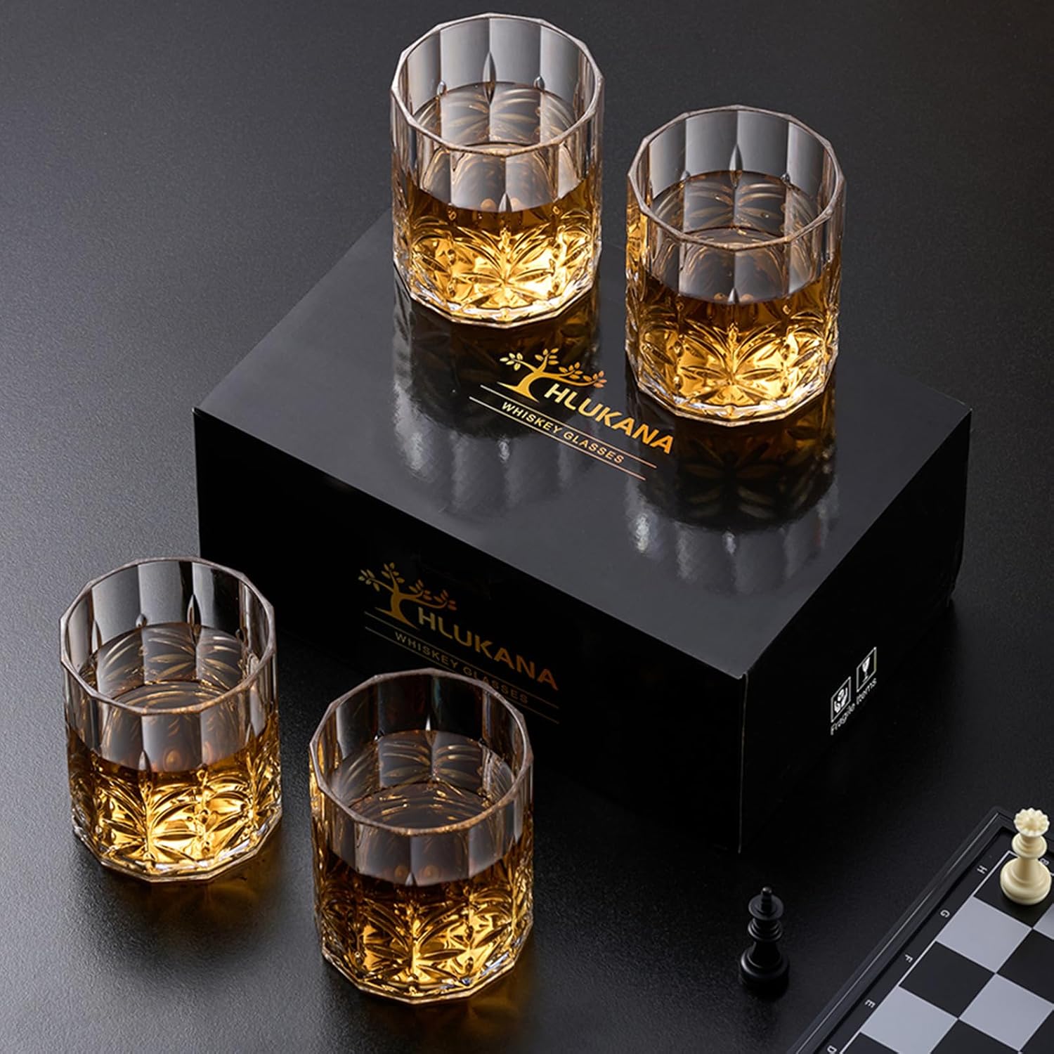 - Whiskey glasses made of top quality 100% Tritan plastic. Tritan plastic glasses retain their clear & glass-like clarity, sparkle beautifully in the light, elevating a unique drinking experience. Cheers!